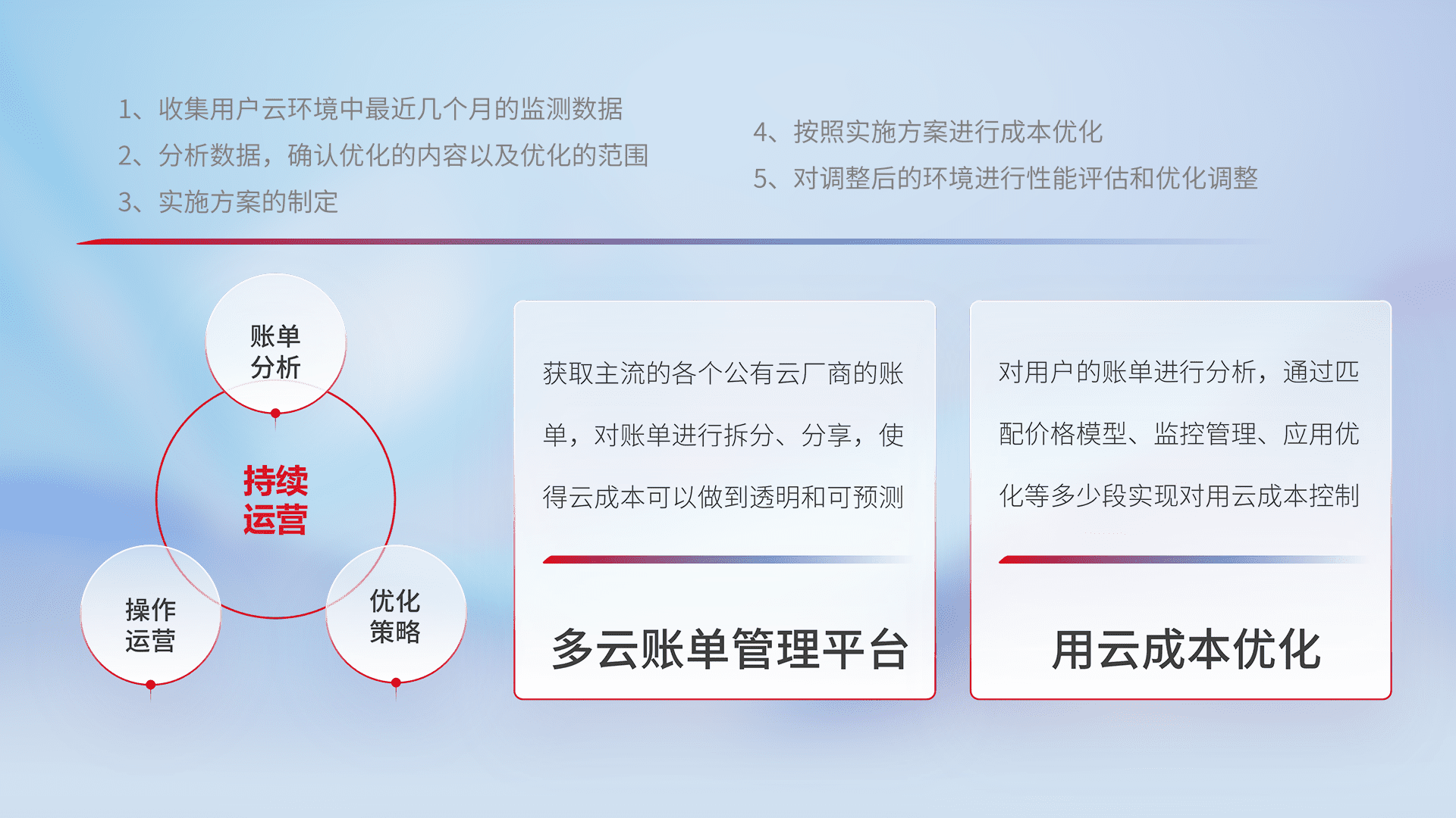 监控业务系统资源开销,,,,对资源的消耗精确计量,,,实现费用的透明化管理,,,,不断提升资源使用率,,,调整资源购买方式,,,,降低资源费用成本,,用云成本可预测、、、、用云费用可优化,,,云资源配额有据可依。。